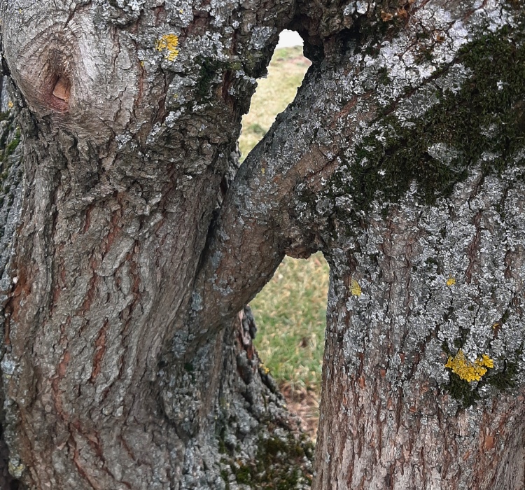 Sie werden auch Engelsaugen, Feenfenster oder Baumkuss genannt und entstehen, wenn Äste oder Baumteile so wachsen, dass sie eine Art Fenster bilden. Leider liegt der Grund für die „Verschmelzung“ nicht darin, dass magische Geschöpfe ihre Kräfte im Spiel haben. Die Realität ist: sie entstehen, wenn Stämme oder Äste erst auseinanderdriften und später wieder aufeinander zu wachsen. Berühren sich Baumteile, kann es windbedingt zu Reibung kommen, und dadurch entstehen Rindenverletzungen. Eine Art Wall (Kallus) aus ungerichtetem Zellgewebe umschließt schließlich diese Verletzungen, und so kommt es im Laufe der Zeit zu einer immer festeren Verbindung der Baumteile – auch von unterschiedlichen Arten. An Rotbuchen, Platanen, Feldahorn oder Hainbuchen sind Elfenaugen relativ häufig zu beobachten.