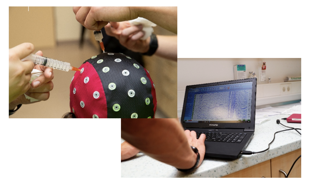Wir erforschen und entwickeln ein mobiles und robustes EEG-System, das von Betroffenen zu Hause selbstständig angewendet werden kann. Da EEGs üblicherweise in Kliniken oder Forschungslaboren aufgezeichnet werden, müssen für mobile Anwendungen besondere Anforderungen erfüllt sein – etwa einfache Handhabung, hoher Tragekomfort, geringe technische Komplexität und lange Akkulaufzeit. Ziel ist es, ein patientenspezifisches Headset mit einer definierten Anzahl von Elektroden und integrierter Verstärkertechnik zu entwickeln.